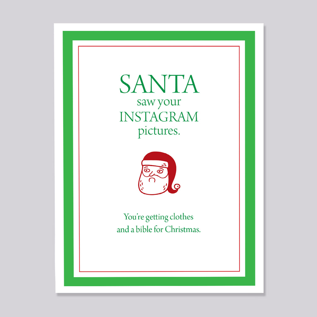 "Santa saw your instagram pictures. You're getting clothes and a bible for Christmas."